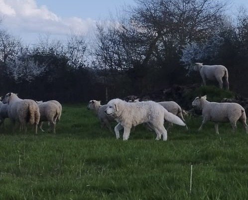 Ces prochaines semaines, le long de l’hippodrome de Rochefort-sur-Loire, près du chemin pédestre, vous pourrez voir des chiens de protection en compagnie de troupeaux de vaches / moutons dans leurs champs.