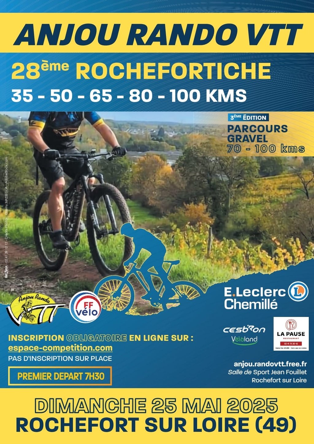 L'association ANJOU RANDO VTT vous invite à participer à sa 28ème Rochefortiche