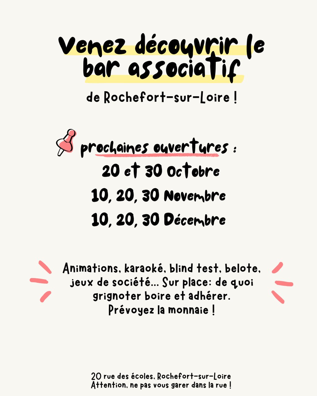 Venez découvrir le bar associatif de Rochefort sur Loire.